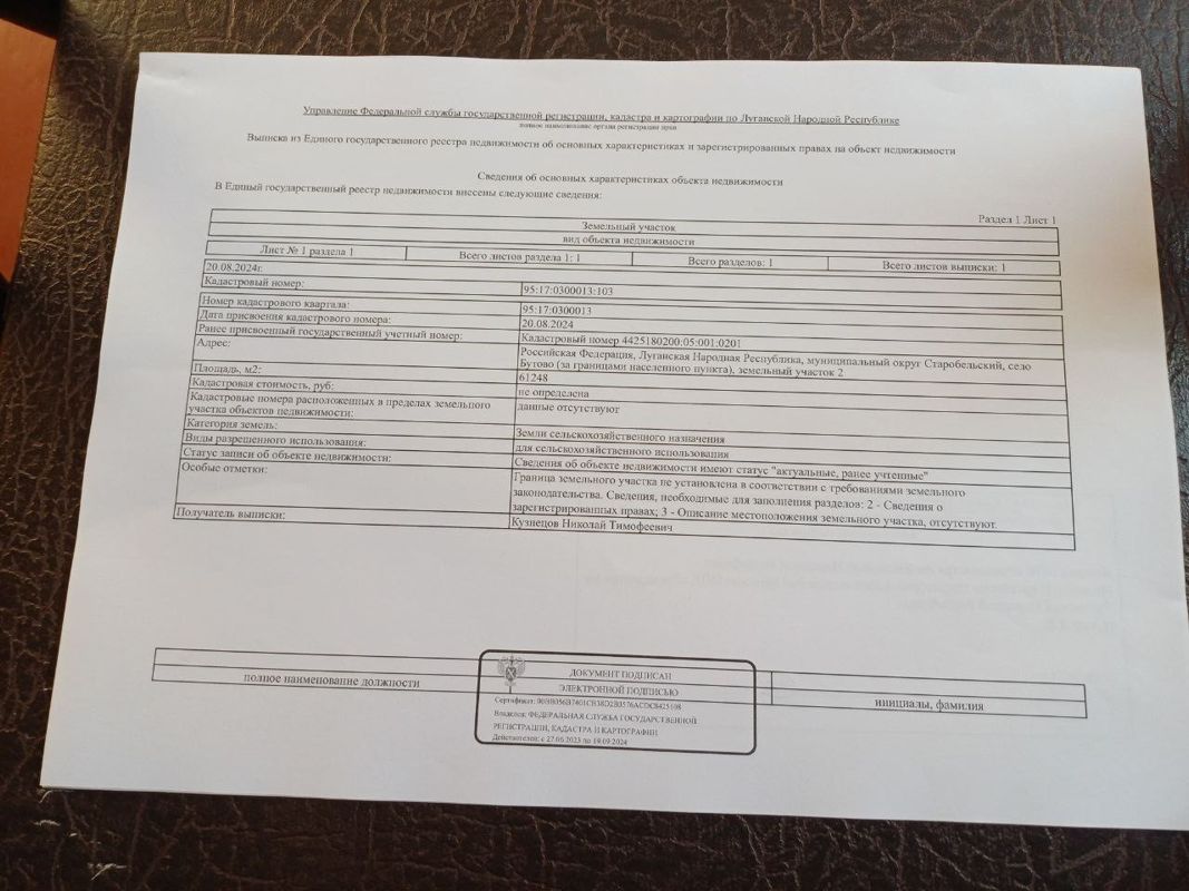 Продаются земли сельхозназначения (паи в кол-ве 6шт) общей площадью 39,02 Га, находятся на территории ЛНР, Старобельский район, с Бутово. Документы РФ., выписка из ЕГРН. В использовании (аренда).