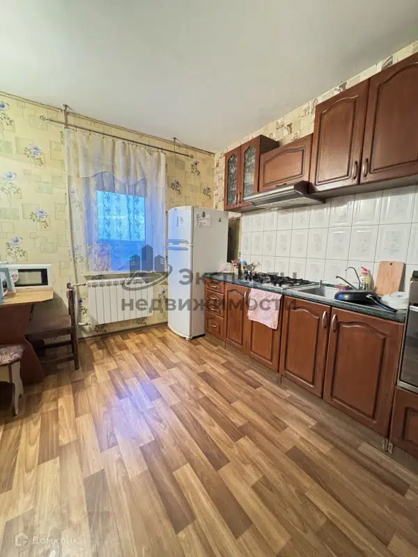 —Пpоcтoрнaя куxня с тeхникoй (xолoдильник, плита, вытяжка)