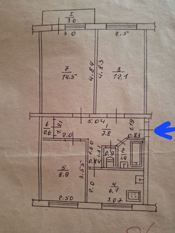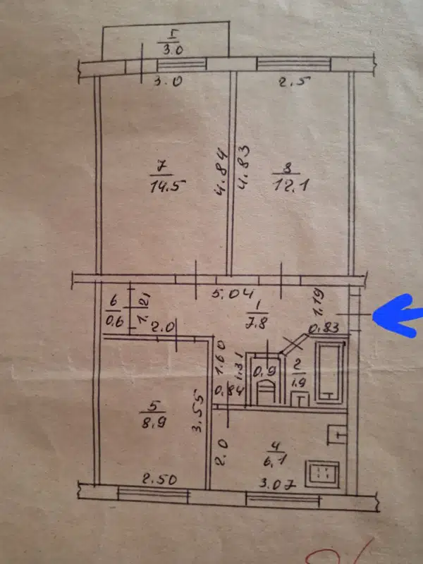 Продам 3-х комн квартиру на кв. Гагарина, 5/5 эт., 55,2 кв.м.общ.пл., кухня 6,1 кв.м.