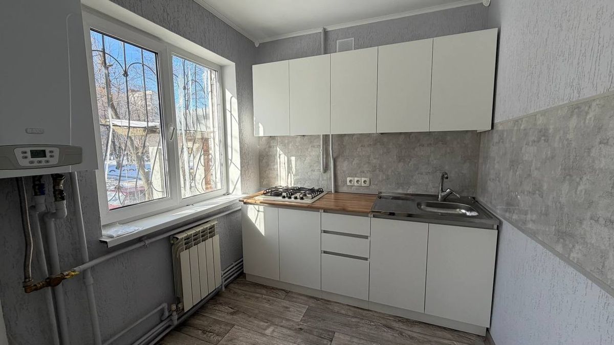 Продается 2к квартира Жовтневый район, квартал Комарова, 1/5 эт, не угловая, 43,3 м2, комнаты площадью 14 м2 и 13,6 м2, АВТОНОМНОЕ ОТОПЛЕНИЕ, утеплена снаружи, гидроизоляция с подвала, на окнах решетк...