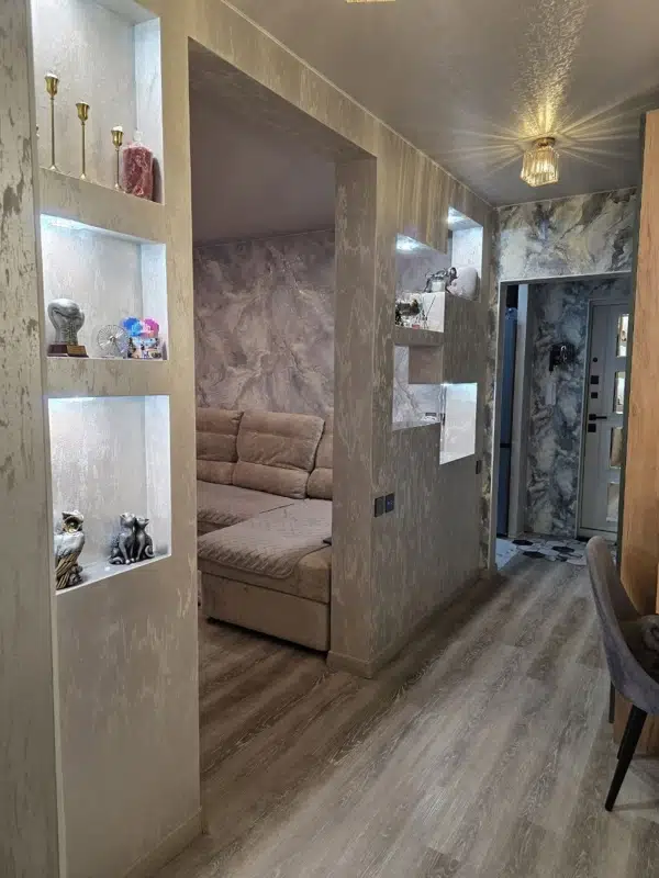 Поменяна проводка, вся разводка труб, заменена сантехника, окна и рама м/п.
