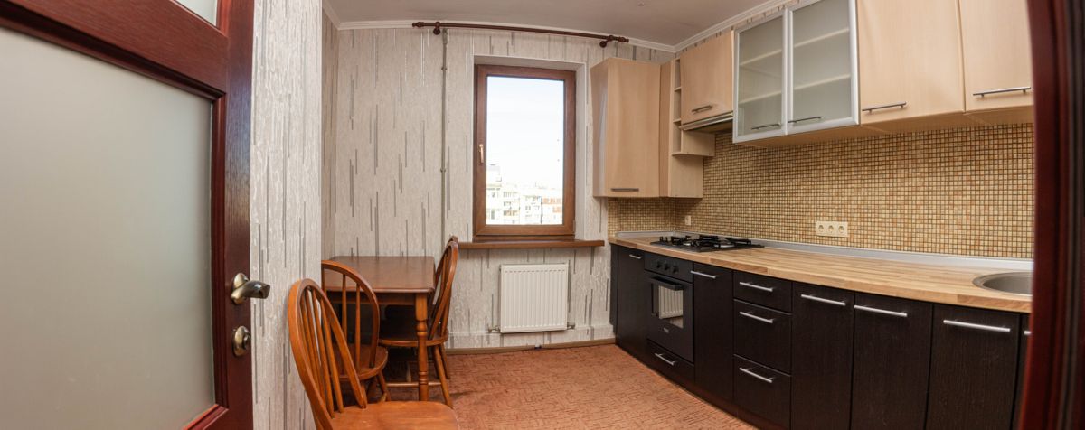 8 этаж 9-этажного дома, площадь 73,8 м2, площадь кухни 9,1 м2. Высота потолков 2,6 м.