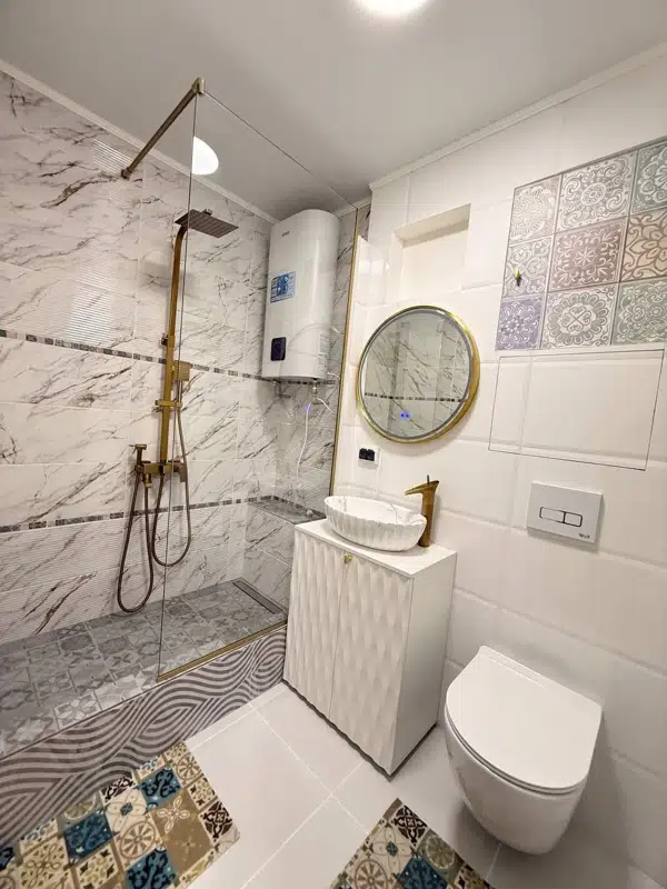 ✅ подвесной унитаз, сантехника и полочки скрыты люками, новый бойлер, кондиционер