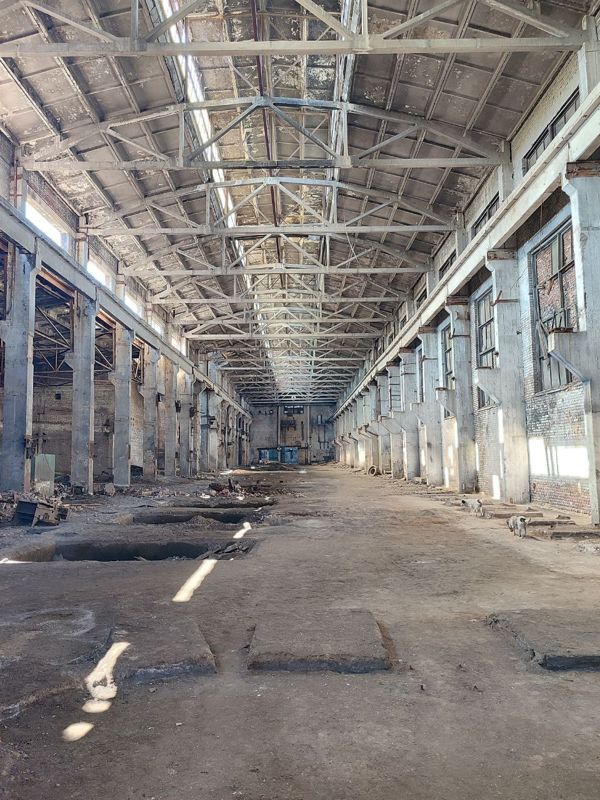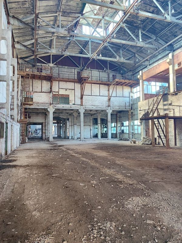 * размером 83 х 172 м, высота 9,5 м, общей площадью 19700 м2 на нескольких уровнях. Площадь первого этажа 14000 м2 в Электричество подведено.