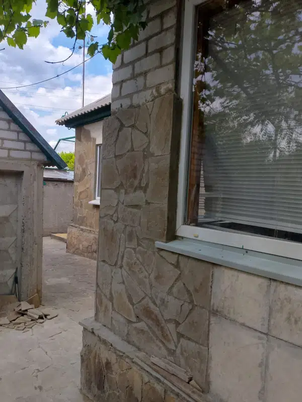 Домострение выполнено из шлакоблока. Облицован диким камнем и селикатным кирпичом. толщина стен 40 см. Что в свою очередь делать дом в летний период прохладным а в зимний теплый. В доме также есть баня. Так же есть обустроенная мангальная зона на участке, есть не большое подсобное помещение для уличного инвентаря. Центральное водоснабжение. Две выгребные ямы. В доме остаётся вся бытовая техника и мебель. Расположен в одном из самом комфортных и тихом районе города. Вся инфраструктура в шаговой доступности. Транспортная развязка одна из самых наилучших. Школа , детский, магазины, все в шаговой доступности.