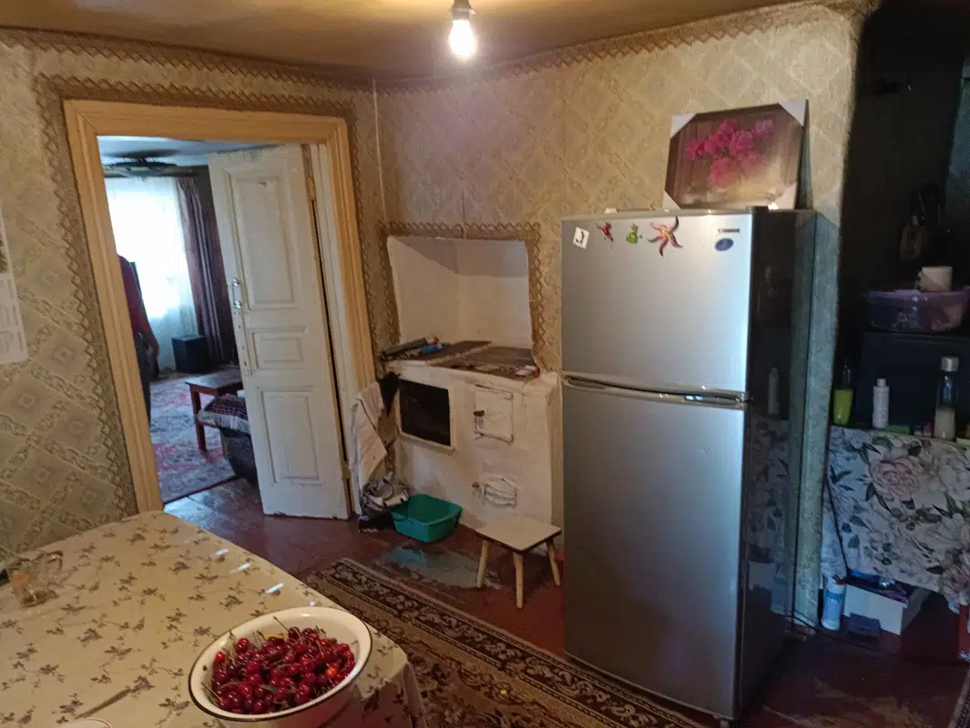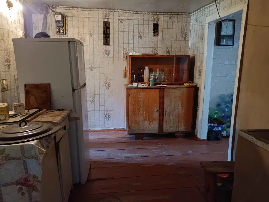 Ровный квадратный участок 5 соток приватизирован, дом 80 м кв из двух половин, 5 комнат, требует реконструкции, отопление печное, газ по улице, есть разрешение на подключение, вода и электричество в доме, новая крыша, на участке хоз постройки, есть заезд для авто
