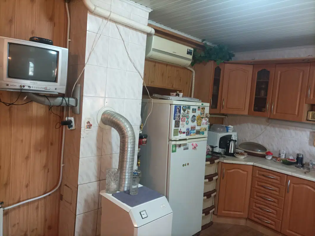 Продам 1,5 эт. дом в Луганске по ул. Московская в хорошем жилом состоянии с мебелью, мергель обложен кирпичом и обшит сайдингом, фундамент из дикаря. Площадь дома 97 м2, количество комнат - 5, ванная/санузел в доме. Отопление газовый котел + колонка. В доме действующий камин. Высота потолков 2,85 м.