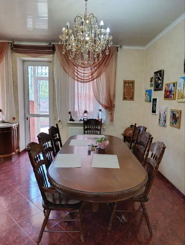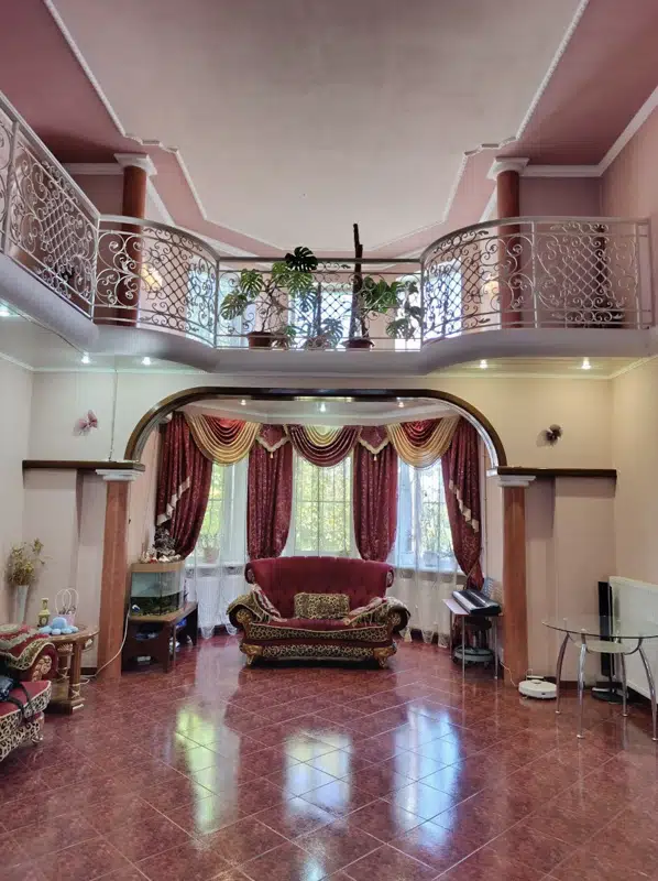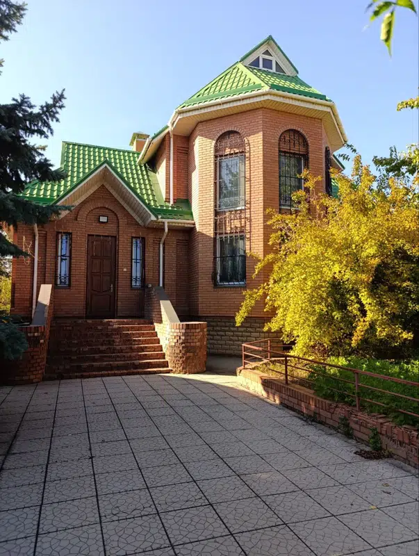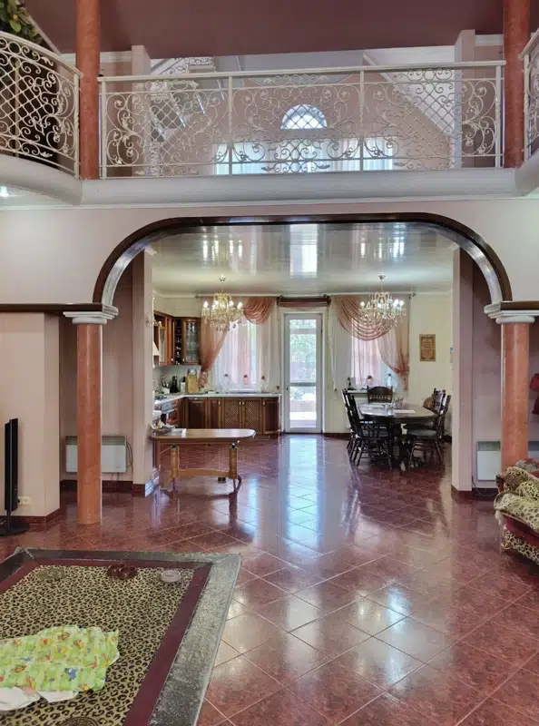 3-этажный дом с нулевым этажом - 480 кв.м. + 1-этажный дом с нулевым этажом - 200 кв.м. В 3-этажном доме: 0-й этаж: сауна, котельная, с/узел, душевая, постирочная, гардеробная, кладовая, комната для отдыха; 1-й этаж: кухня-столовая - холл 80 кв.м, 3 спальные комнаты; 2-й этаж: 3 спальные комнаты, кабинет, с/узел; 3-й этаж: спортзал. В 1-этажном доме: 0-й этаж - 4 комнаты; 1-й этаж - гараж, кухня, с/узел, комната отдыха. Мебель, быт техника всё остаётся. Во дворе огромная беседка из красного кирпича для отдыха (с мангалом и камином) 30 кв.м, бассейн, хоз. постройки. Земля 20 сот. (10 сот. приват). Прекрасный вариант для двух семей.