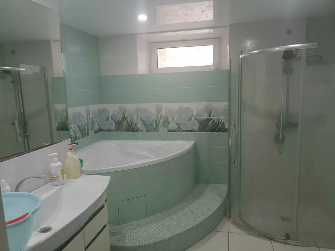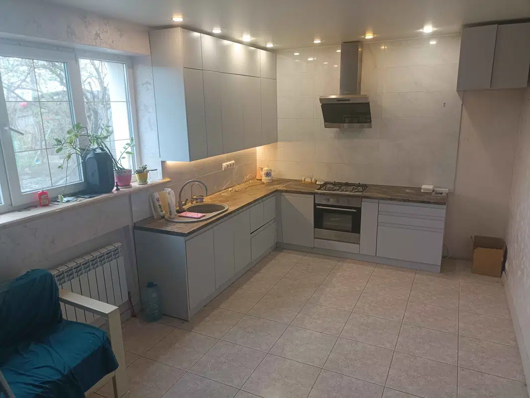 Продается двухэтажный дом в центре в районе ЖК Дружба, площадь 140 м.кв, 6 соток приватизированной земли, крыша металлочерепица, фасад утеплен пенопластом, 5 комнат, огромная кухня, два санузла, отопление двухконтурный котел, теплые полы, дополнительно установлен бойлер, современный ремонт, встроенная кухня, гараж, двор вымощен дикарём