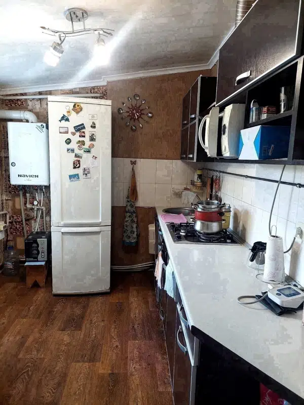 Общая площадь 55м2, 3 комнаты, из них 2 изолированных комнаты и 1 проходная. Косметический ремонт, жилое состояние. Кухня, с/у совмещен, двухконтурный котёл. Остается почти вся мебель и техника. Центральное водоснабжение, земля 4 сотки, не приват. На участке имеется хозпостройка, погреб. Документы готовы, никто не прописан.