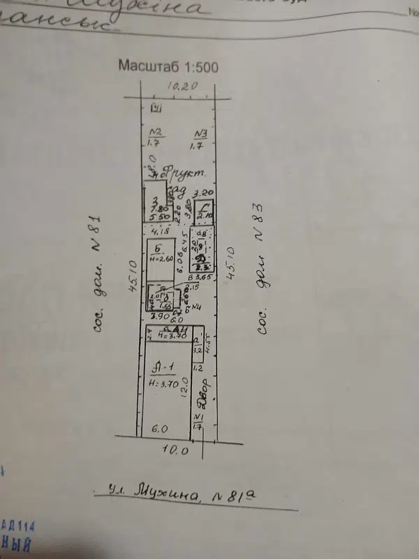 Ширина участка по фасаду 10 метров.