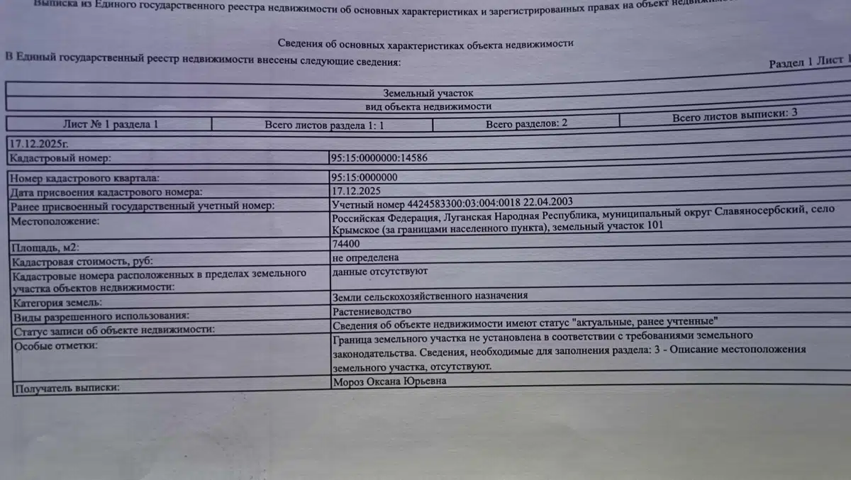 Продам земельный участок 7,4 гектаров в Луганской области в Славяносербском р-не, с. Крымское