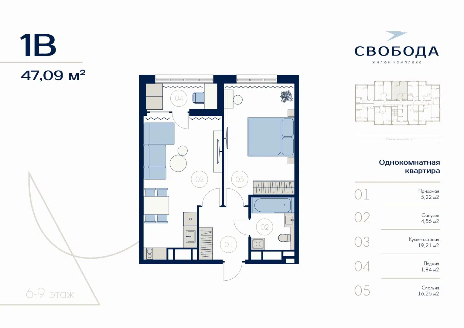 69 м² • 6/11 этаж