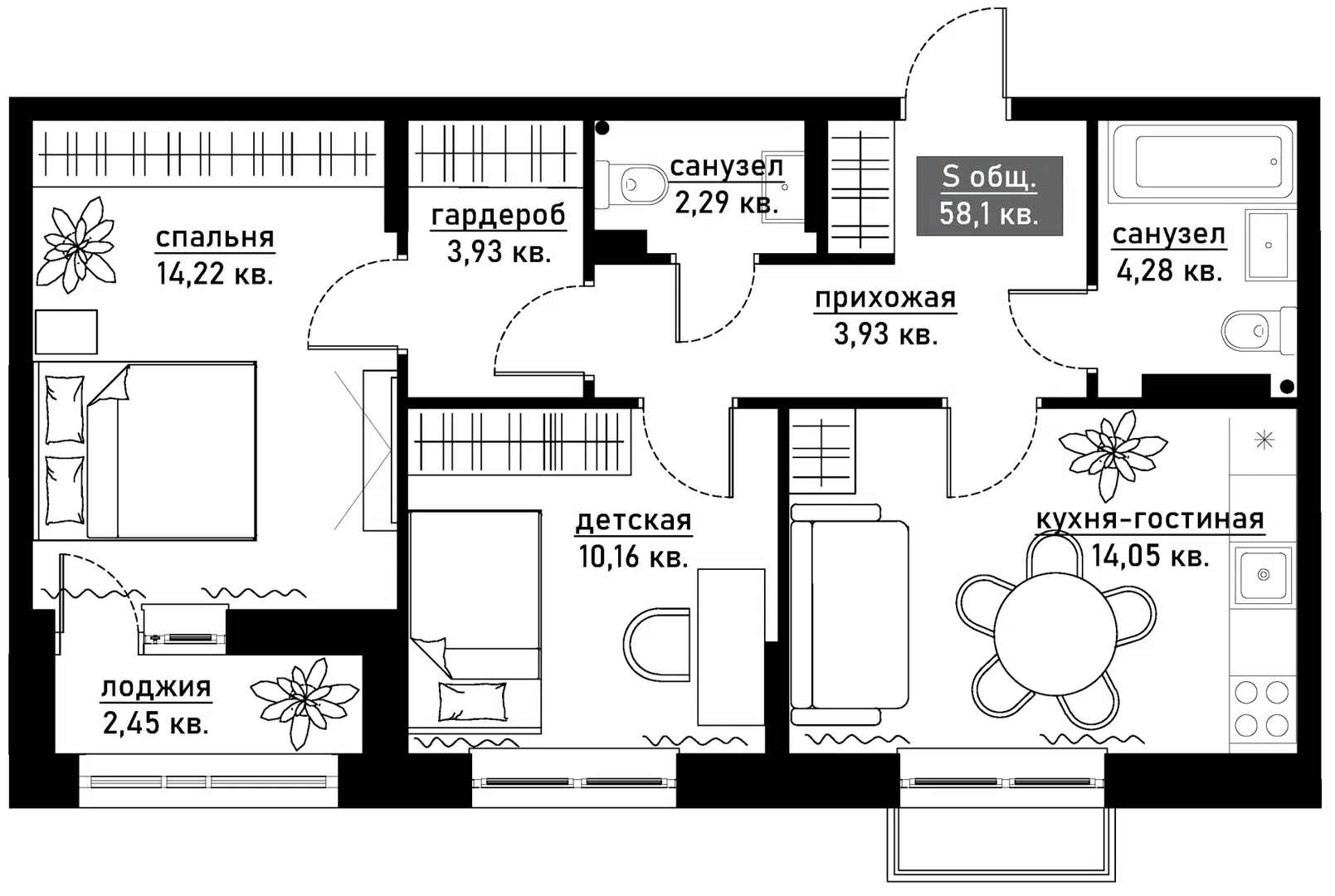 58,1 м²