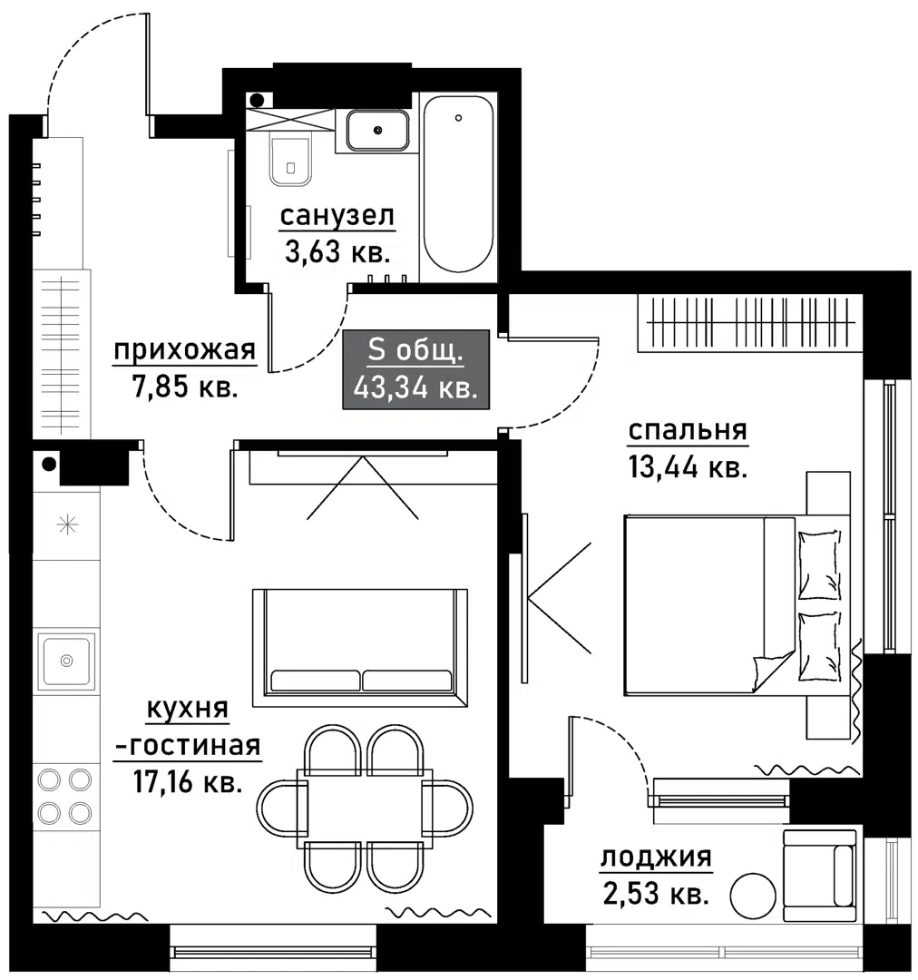 43,3 м²