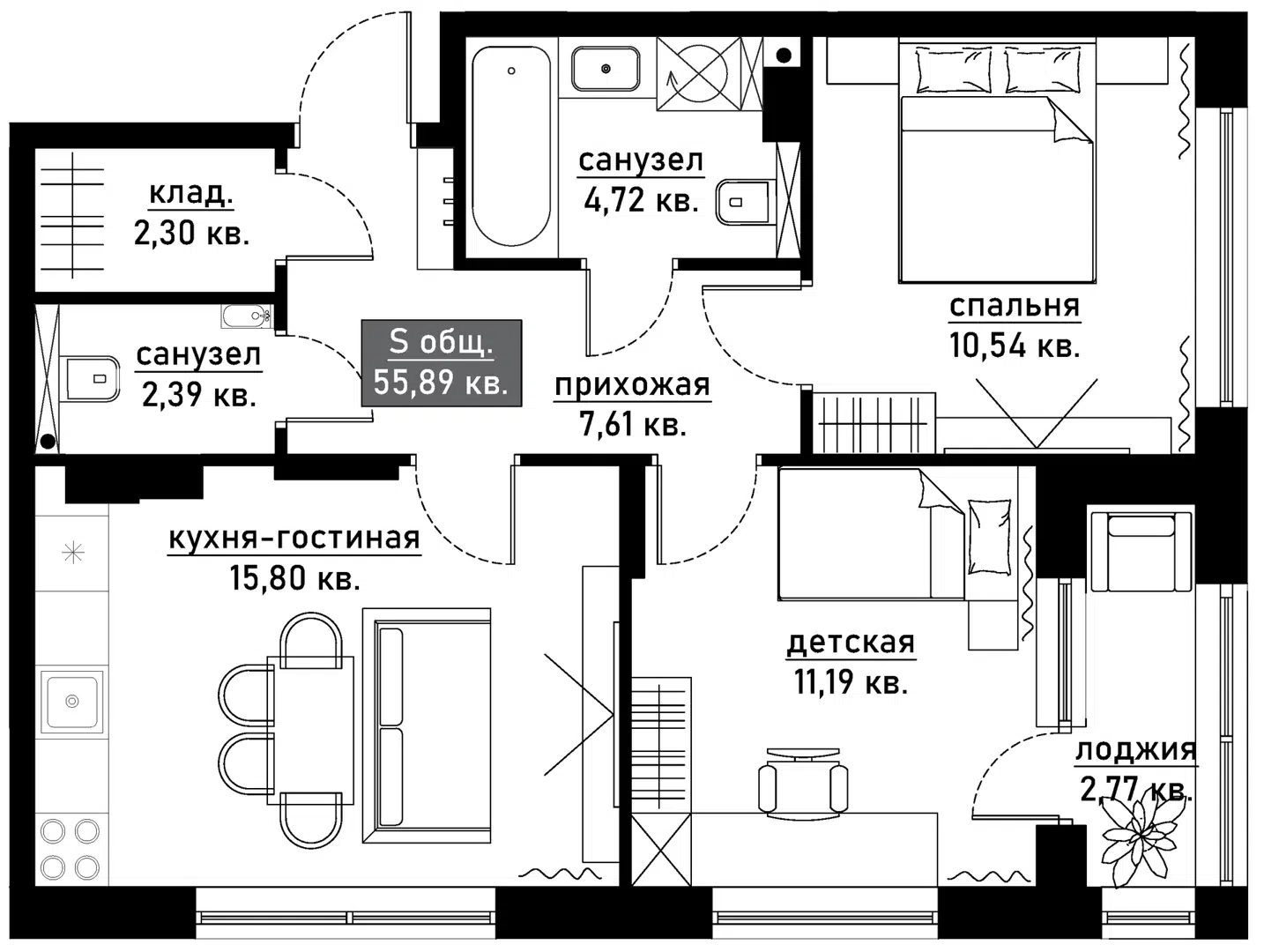 55,9 м²
