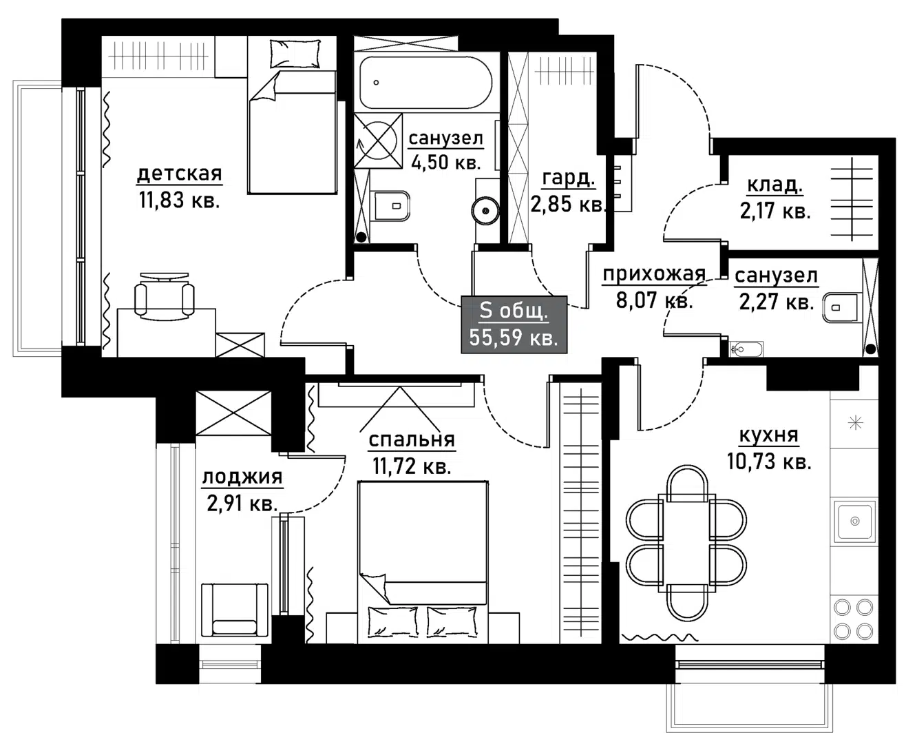 55,6 м²