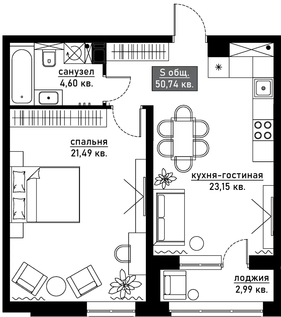 50,7 м²