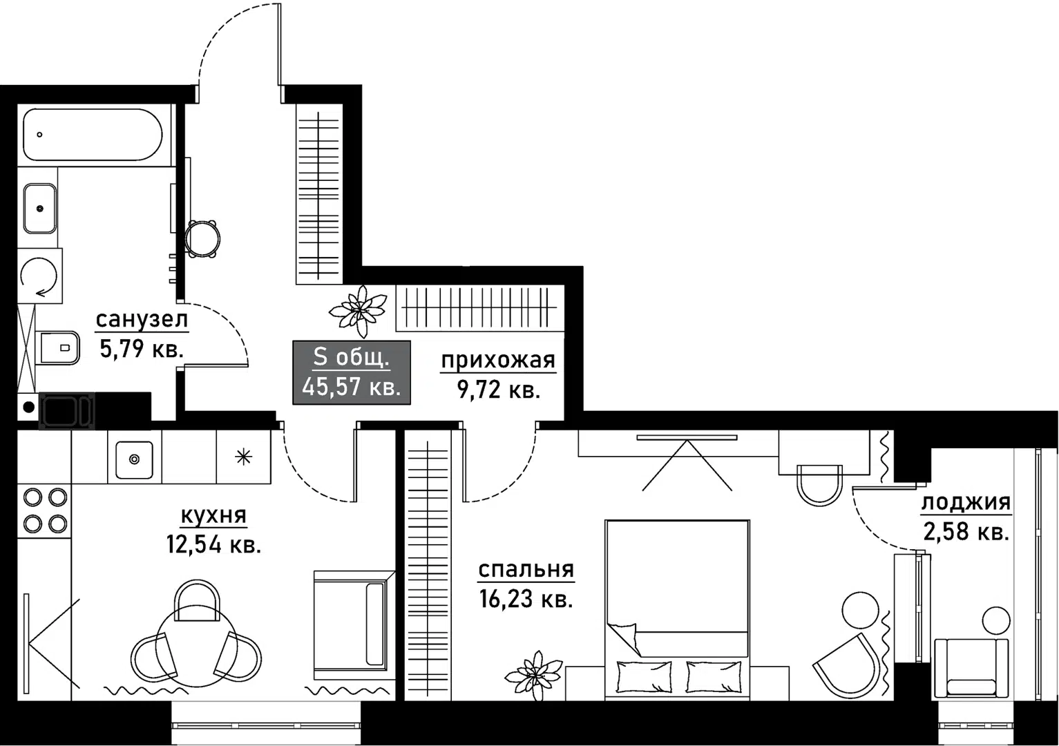 45,6 м²