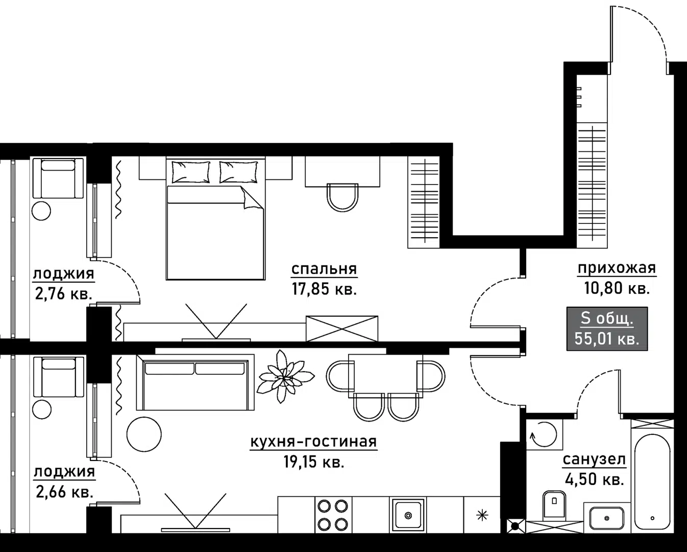 55 м²