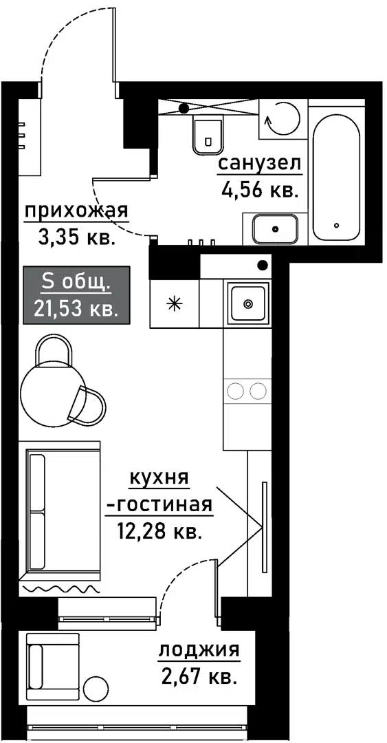 21,5 м²
