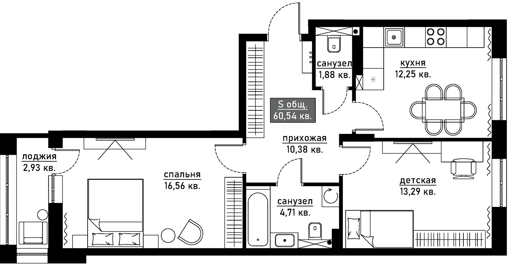 60,5 м²