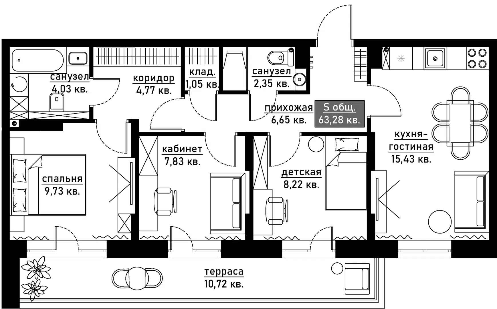 63,3 м²