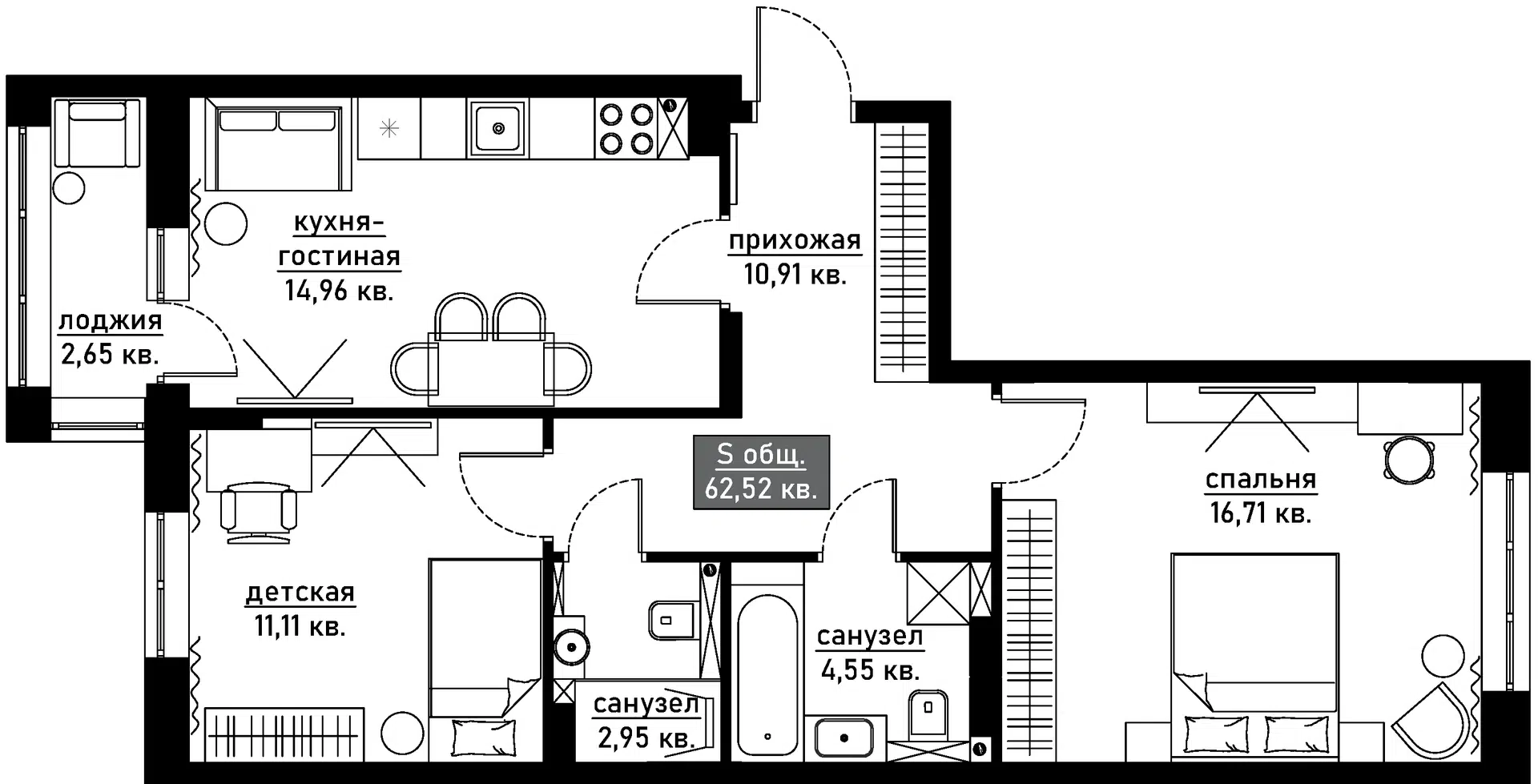 62,5 м²