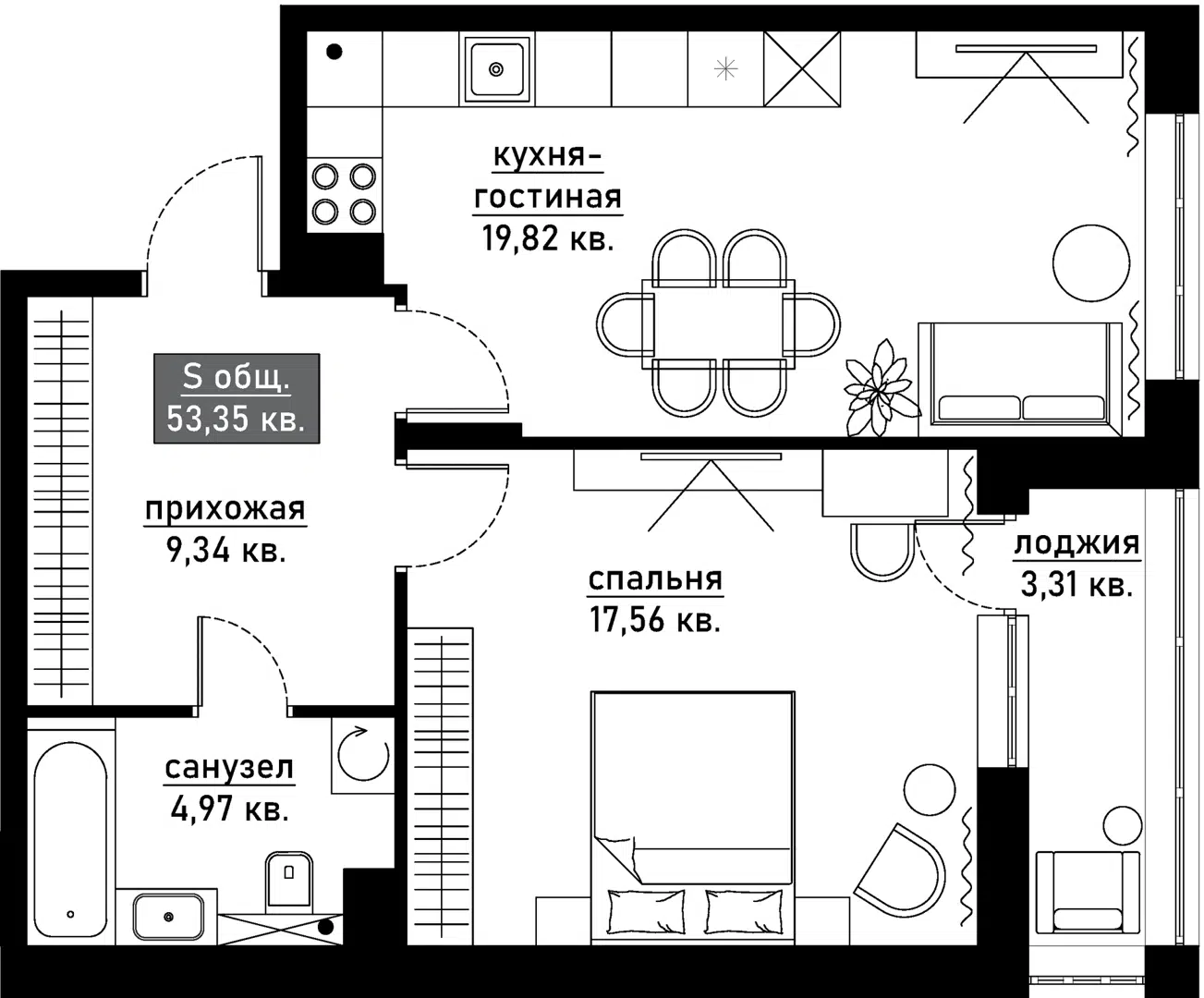 53,4 м²