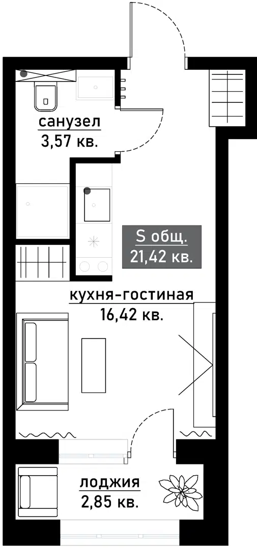 21,4 м²