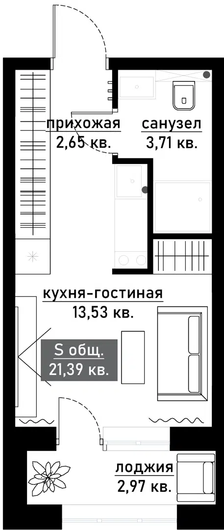 21,4 м²