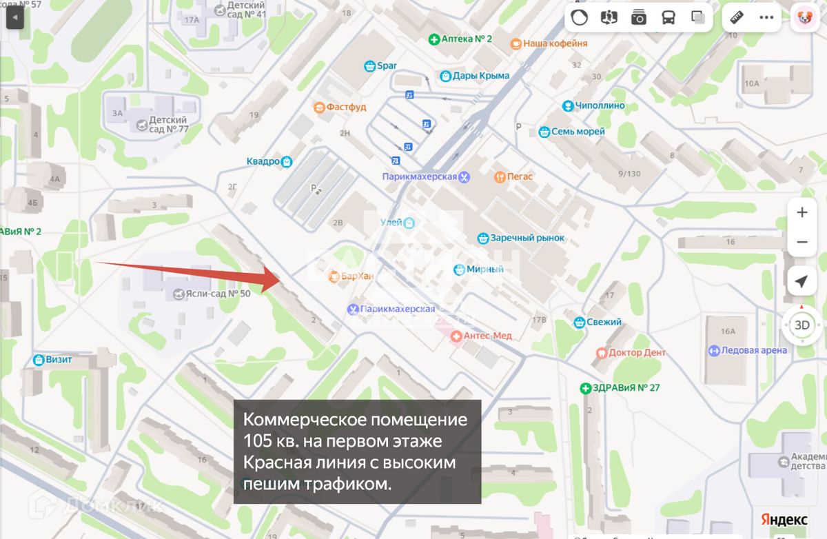 — 🚶♂️ Интенсивный пешеходный трафик (рядом рынок кв. Мирный, кольцо общественного транспорта, ТЦ)