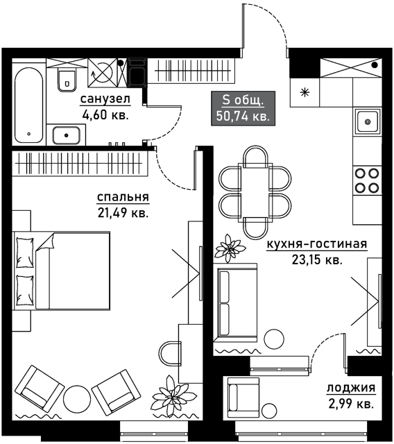 Общая площадь: 60,8 м².