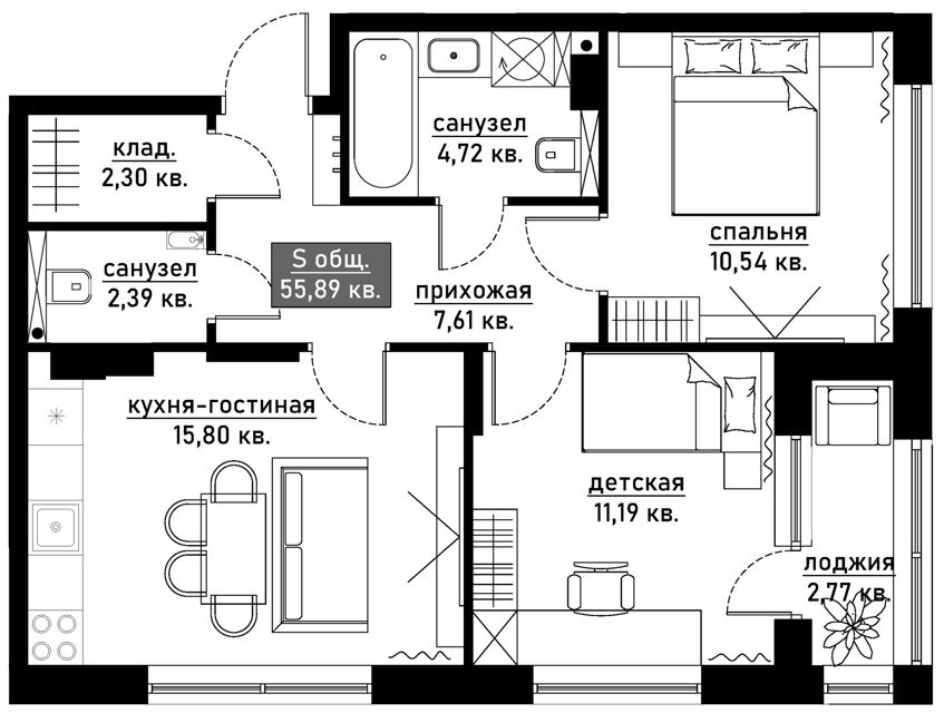 Тип квартиры: 3-комнатная