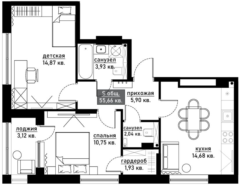 Полная готовность к проживанию: квартира укомплектована мебелью – заходи и живи!