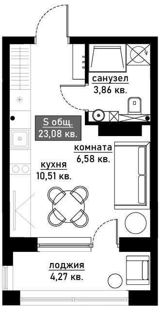 🔹 Общая площадь: 29,5 кв. м.