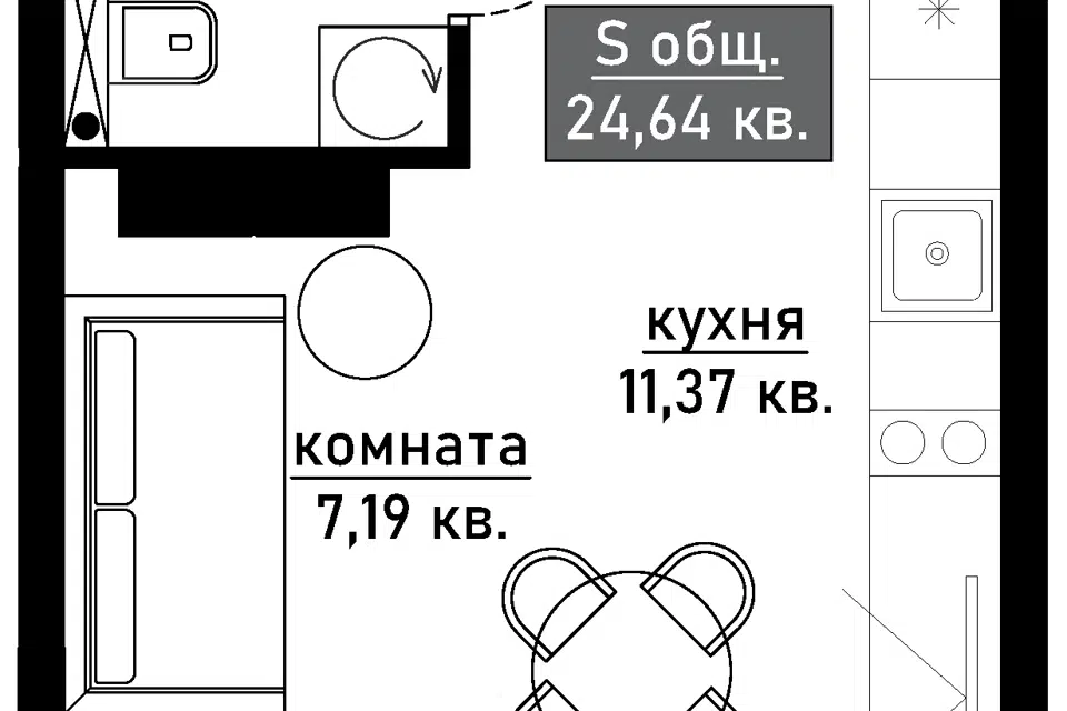 | 🟢 Площадь | от 20 до 24 м2. |