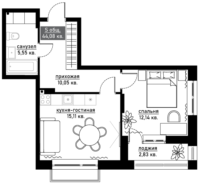 Площадь 57 м2