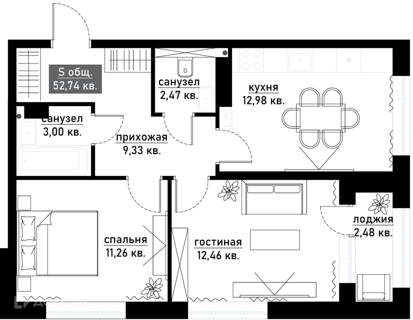 Площадь: 74 м²