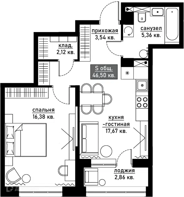 Общая площадь 47,1м².