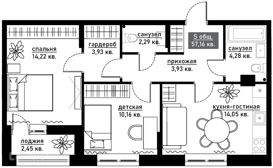 Площадь 48 кв.м.