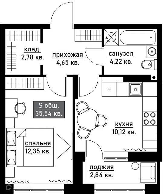 🔹 Общая площадь: 29,5 кв. м.