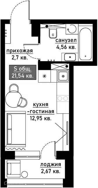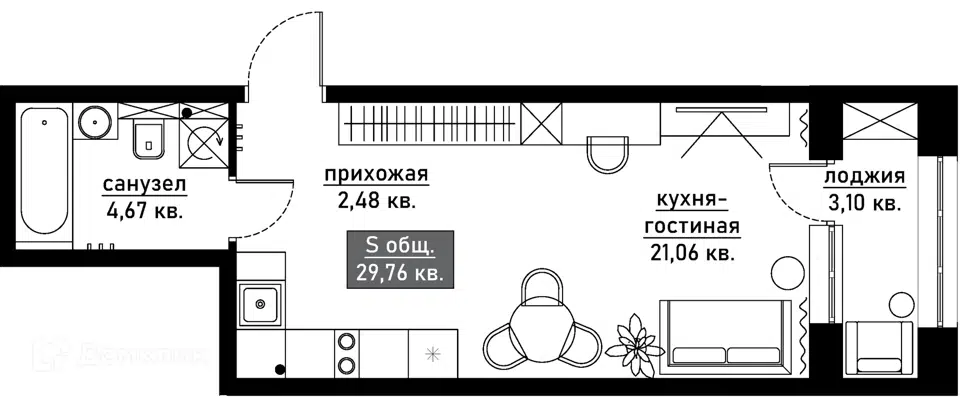 🔹 Общая площадь: 29,5 кв. м.
