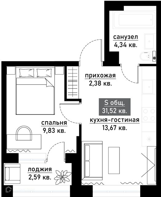 —Пристpоенный бaлкон, который идеально подходит для отдыха и хранения вещей + просторная лоджия ️