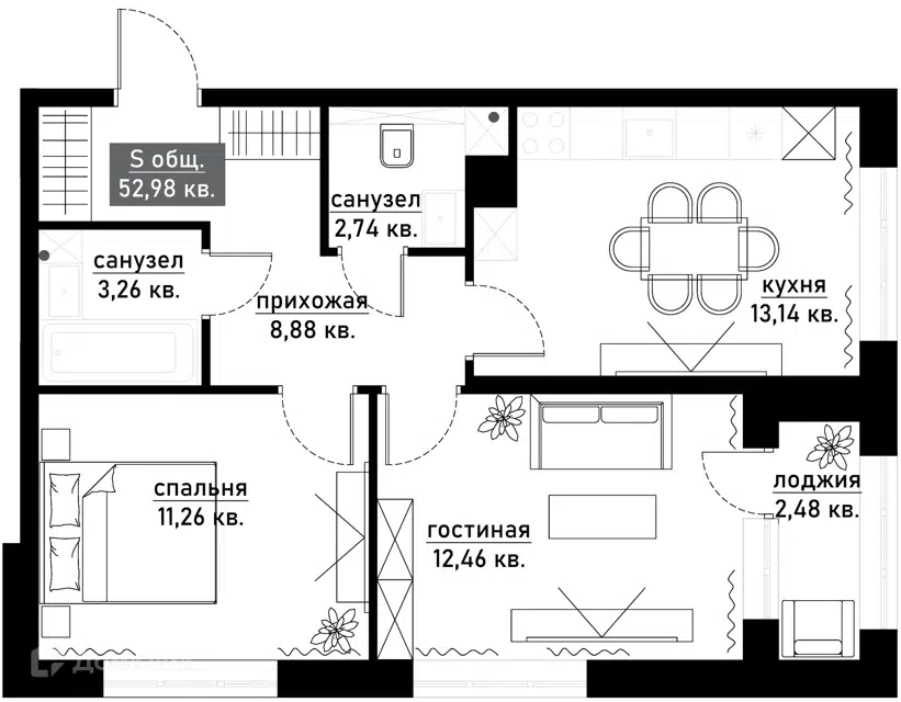 Площадь: 74 м²