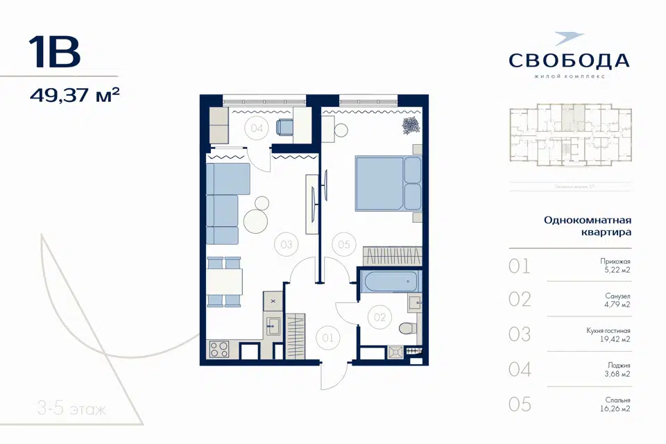 | 🟢 Площадь | от 33 до 89 м2. |