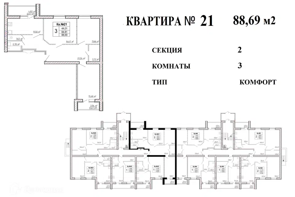 | 🟢 Площадь | от 31 до 79 м2. |