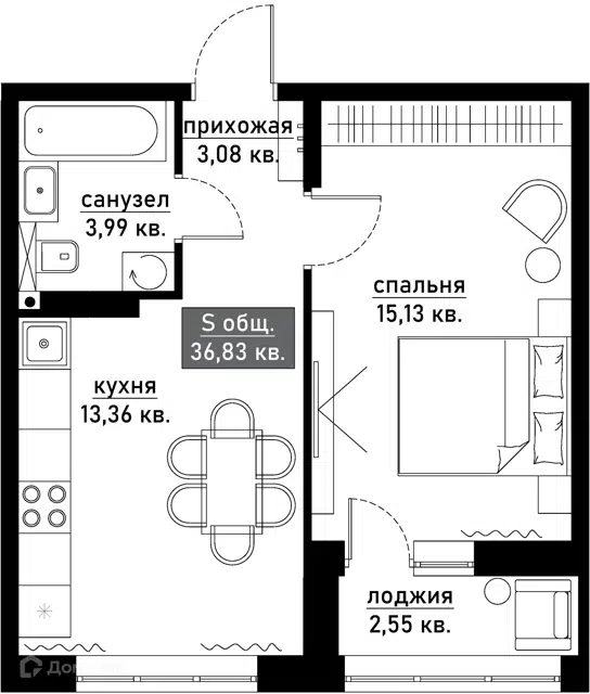 | 🟢 Площадь | от 29 до 38 м2. |