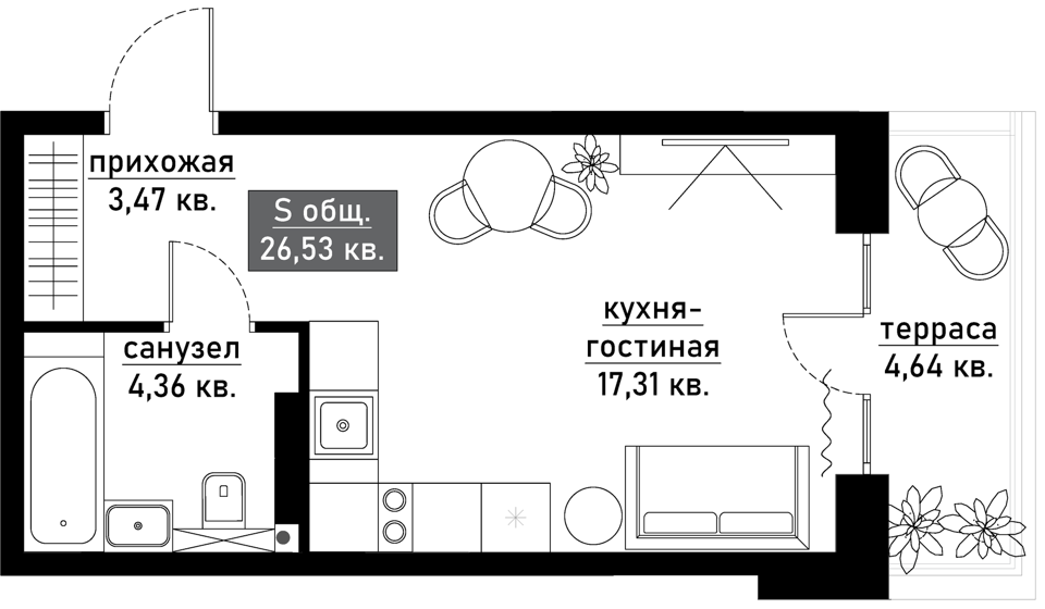 Продажа студий с отделкой в новостройке на Ленинградской улице