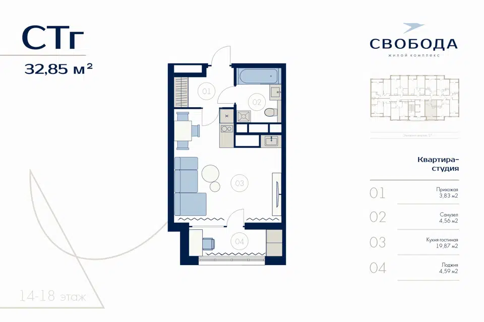 | 🟢 Площадь | от 33 до 84 м2. |